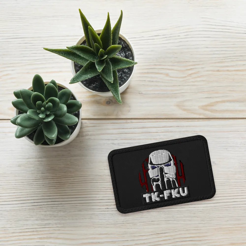 Add a rebellious touch to your style with our TK-FKU embroidered patch. Made from durable twill fabric, this edgy accessory offers various attachment options. Express your individuality and love for the galaxy far, far away.